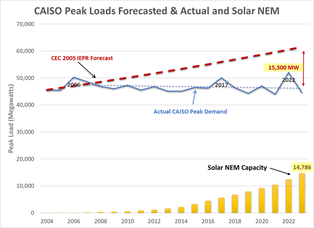 This premise overlooks that these customer resources have met at least a quarter on the energy demand since 2000. The true customer peak is three hours earlier and at least 12,000 megawatts higher than the metered CAISO peak. Based on historic utility costs over that period, annual utility revenue requirements would have increased $14 billion. California already struggled to bring on enough renewable energy over that period—the costs and environmental consequences of using utility generation would likely be even higher.