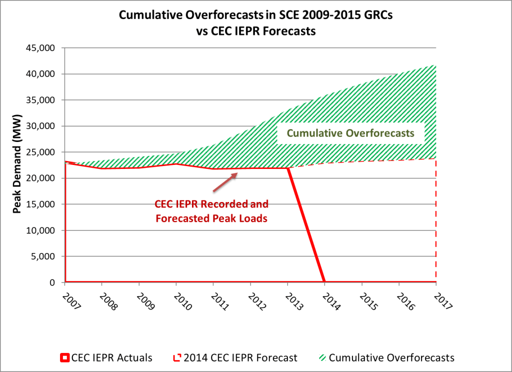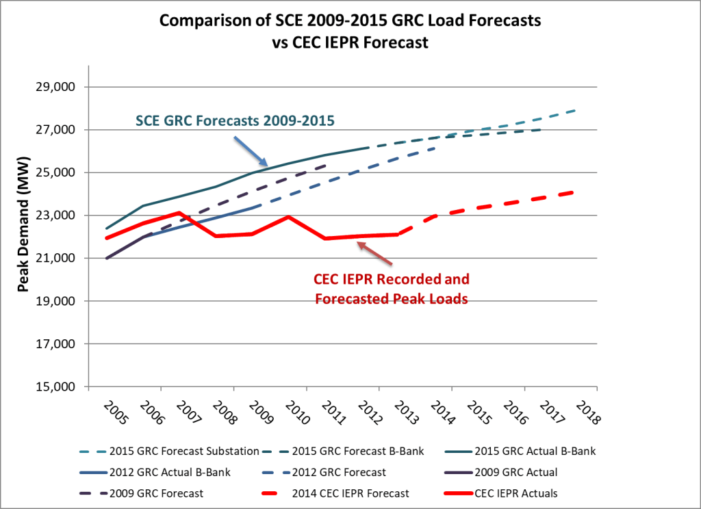 While testifying on behalf of the Agricultural Energy Consumers Association (AECA) in PG&E and SCE GRC Phase IIs from 2009 to 2018 we presented data comparing the accuracy of the utilities forecasts to those from the California Energy Commission’s Integrated Energy Policy Report (IEPR). The IEPR forecasts were consistently much more accurate (and still biased high.) (We moved on to different issues after 2018.)