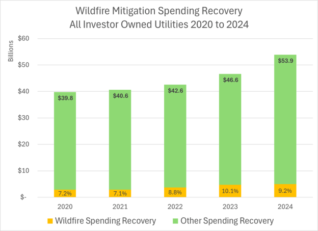 • 4.9 Wildfire spending as a source of cost increases: the authors attribute a 6 cents/kWh increase in California wildfire spending. That’s incorrect (the PAO took PG&E’s assertion without checking it) as we have tracked the total utility spending—it’s only about 10% or less than 4 cents/kWh of IOU rates. But a portion of that increase already happened prior to 2019, and the wildfire bond adder wasn’t an increase but rather a repurposing of an existing bond cost recovery charge. The rate increase attributable to wildfire spending is less than 3 cents on a statewide basis (rolling in the municipals, e.g., LADWP & SMUD).