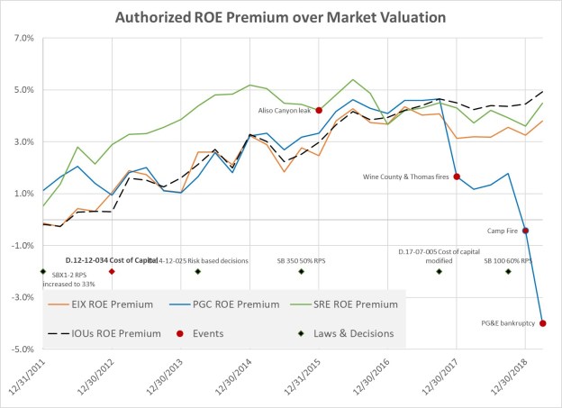 PG&E Corp, the holding company, filed for Chapter 11 bankruptcy on January 14, 2019. PG&E had learned from its 2001 bankruptcy proceeding for its utility company subsidiary that moving its legal and regulatory issues into the federal bankruptcy court gave the company much more control over its fate than being in multiple forums. Bankruptcy law afforded the company the ability to force regulators to increase rates to cover the costs authorized through the bankruptcy. And PG&E suffered no real consequences with the 2001 bankruptcy as share prices returned, and even exceeded, pre-filing levels.